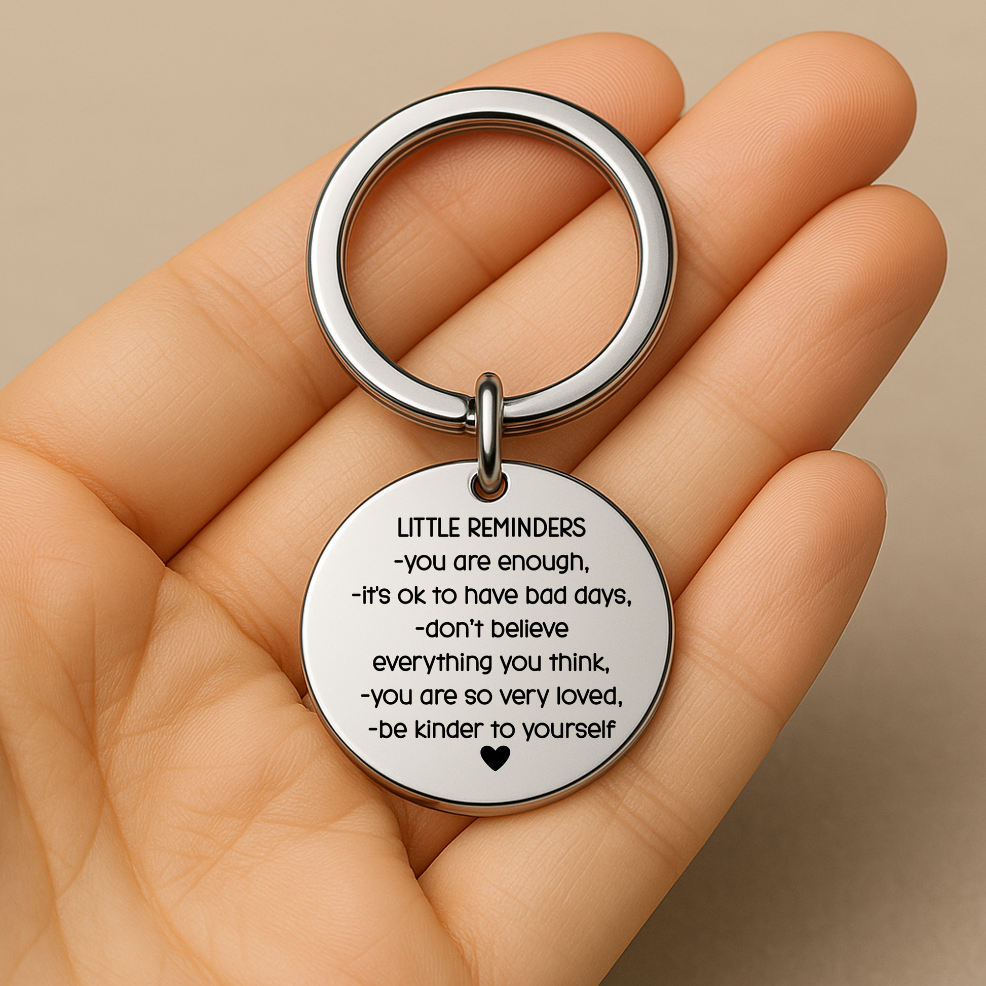 Sometimes, we all need a few gentle reminders. This “Little Reminders” stainless steel keychain features a heartfelt collection of affirmations to uplift and ground you when life feels overwhelming: